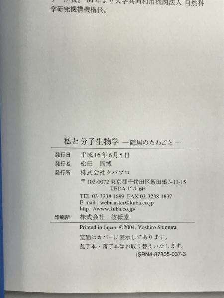 私と分子生物学―隠居のたわごと クバプロ 志村令郎