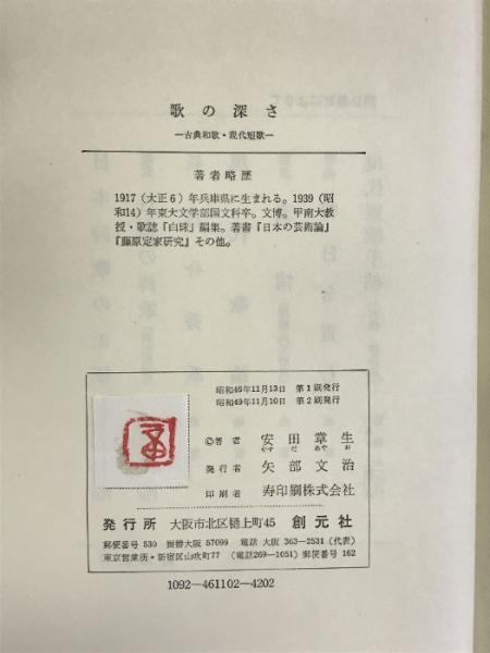 歌の深さ―古典和歌・現代短歌 創元社 安田 章生