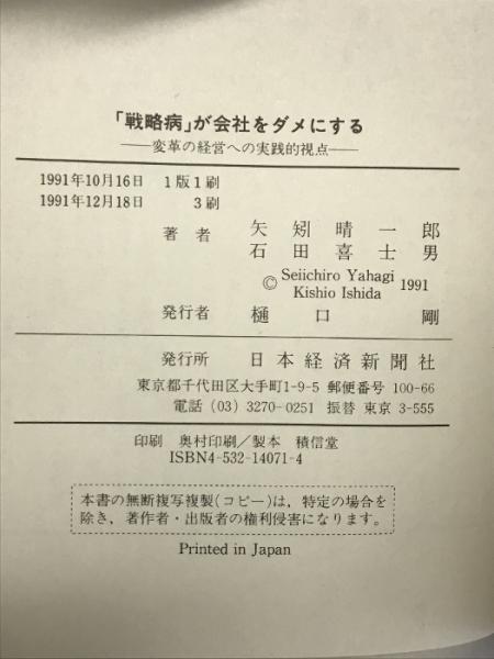 戦略病が会社をダメにする: 変革の経営への実践的視点 日経BPマーケティング(日本経済新聞出版 矢矧 晴一郎