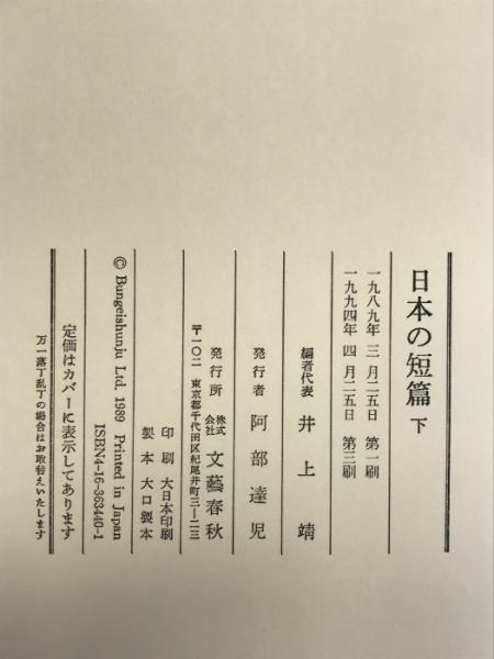日本の短篇 下 文藝春秋 井上 靖
