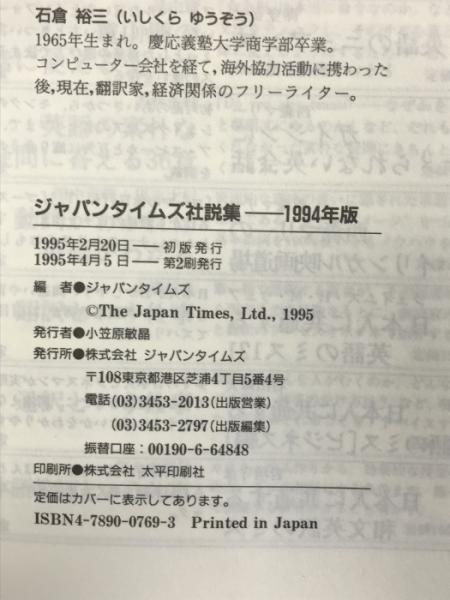 ジャパンタイムズ社説集 1994年版 ジャパンタイムズ出版 ジャパンタイムズ