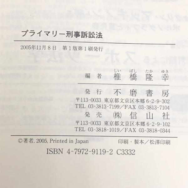 プライマリー刑事訴訟法 不磨書房 椎橋 隆幸