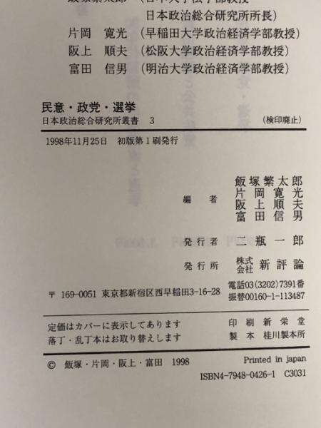 民意・政党・選挙 (日本政治総合研究所叢書 3) 新評論 飯塚 繁太郎