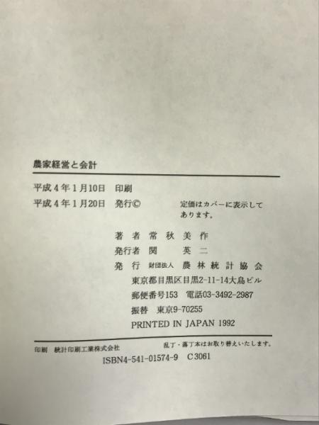 農家経営と会計 農林統計協会 常秋 美作