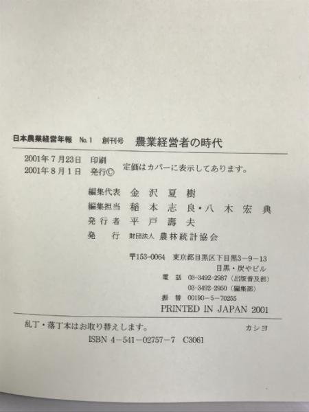 農業経営者の時代 (日本農業経営年報 No. 1) 農林統計協会 金沢 夏樹