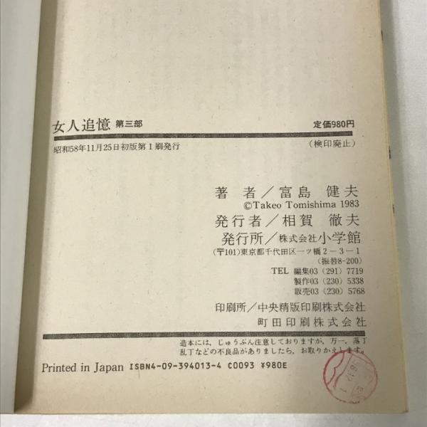 女人追憶 第3部 小学館 富島 健夫