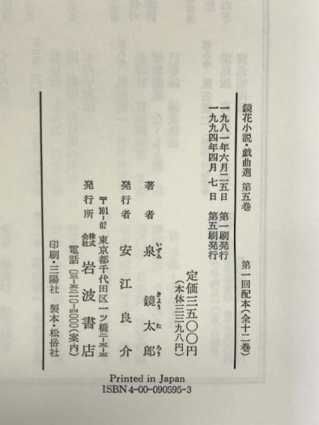 鏡花小説・戯曲選 第5巻 岩波書店 泉 鏡花