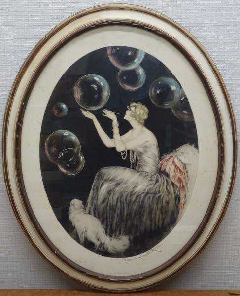 ルイ・イカール エッチング額 「シャボン玉」