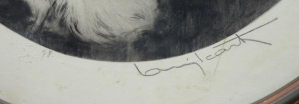 • 解説 オリジナル楕円形額 サイン入 本紙44×32cm 額寸59×48cm 1930年作 サイン横のマージンに工房の刻印入 (マージンに経年少シミ) 版面と額は概ね状態良好 *サインと刻印の画像有