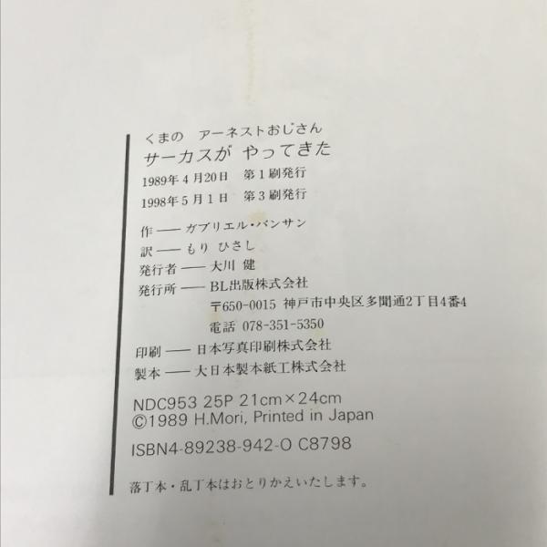 サーカスがやってきた (くまのアーネストおじさん) ビーエル出版 ガブリエル・バンサン