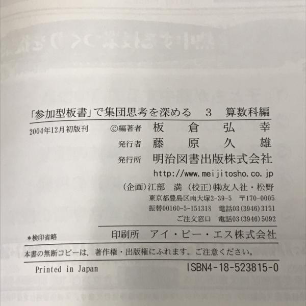 「参加型板書」で集団思考を深める 3 算数科編 明治図書出版 板倉 弘幸