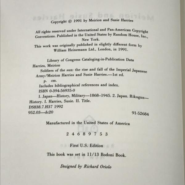 洋書 Soldiers of the Sun The Rise and Fall of the Imperial Japanese Army Random House SUSIE Harries