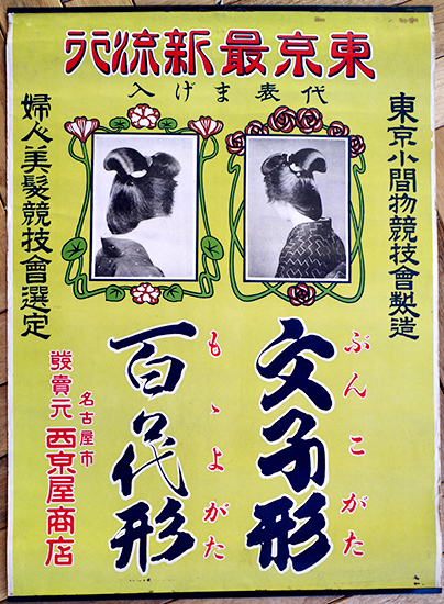 ポスター 東京最新流行代表まげ入 髪型・文子形/百々代形 54×39㎝上下金具入 並上品 戦前