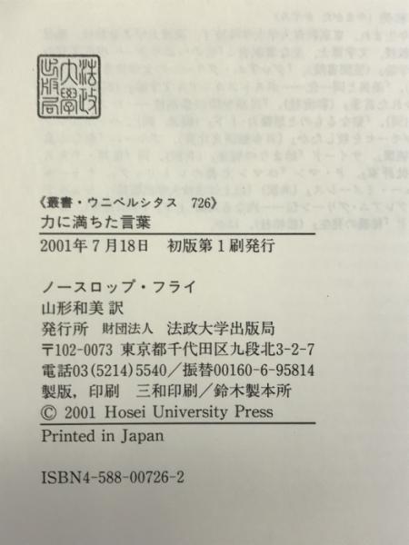 力に満ちた言葉―隠喩としての文学と聖書 (叢書・ウニベルシタス 726) 法政大学出版局 ノースロップ フライ