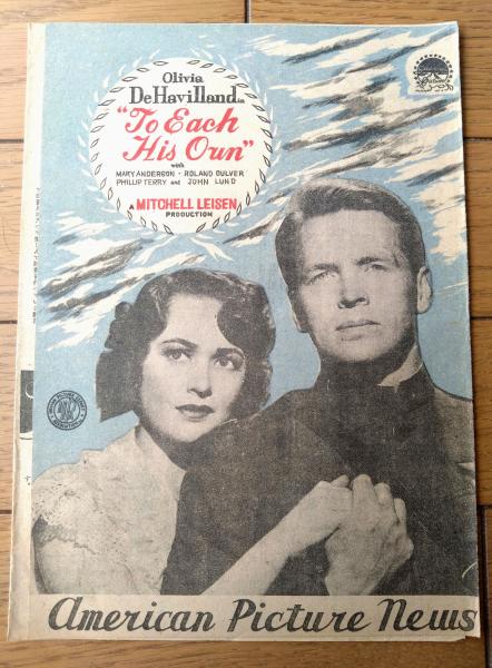 【映画「遥かなる我が子(オリビア・デ・ハビランド主演/ダニエル・L・ファップ監督)」パンフレット(B5サイズ・全6ページ一枚物)】アメリカン・ピクチュア・ニュース/昭和23年