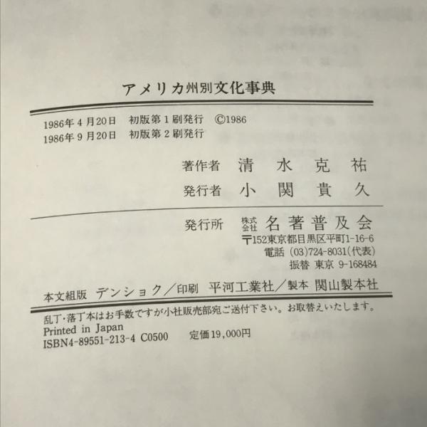 アメリカ州別文化事典 名著普及会 清水 克祐