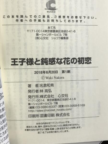 王子様と鈍感な花の初恋 (ショコラ文庫) 心交社 名倉 和希