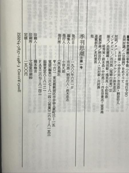 季刊思潮 (1988 第1号) 思潮社 市川浩 柄谷行人 鈴木忠志 磯崎新