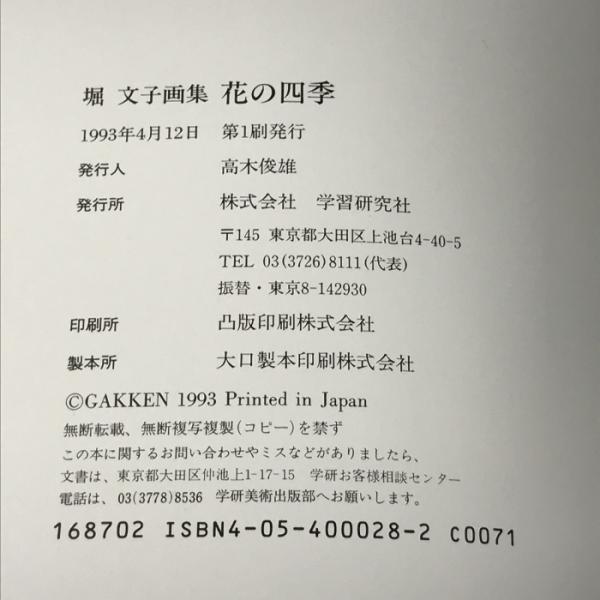 堀 文子画集 花の四季 学習研究社 GAKKEN 1993