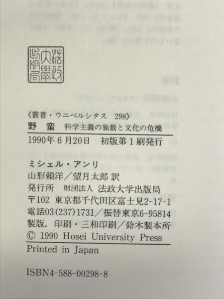 野蛮: 科学主義の独裁と文化の危機 (叢書・ウニベルシタス 298) 法政大学出版局 山形頼洋