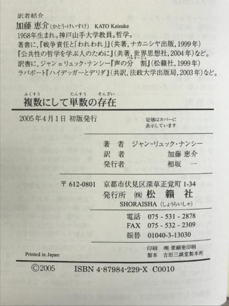 複数にして単数の存在 松籟社 ジャン=リュック ナンシー