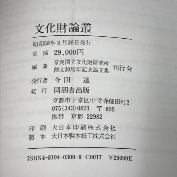 文化財論叢 奈良国立文化財研究所創立30周年記念論文集 同朋舎
