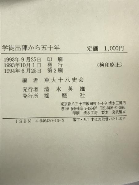 学徒出陣から五十年 揺籃社 東大十八史会