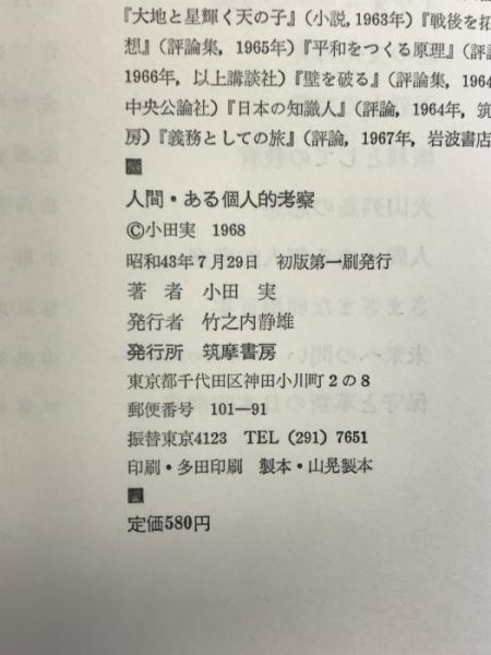 人間・ある個人的考察 筑摩書房 小田実