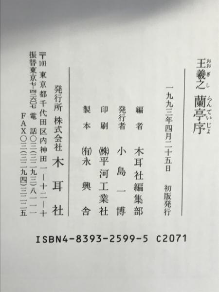王羲之蘭亭序 (木耳社手帖シリーズ B 13) 木耳社 木耳社編集部