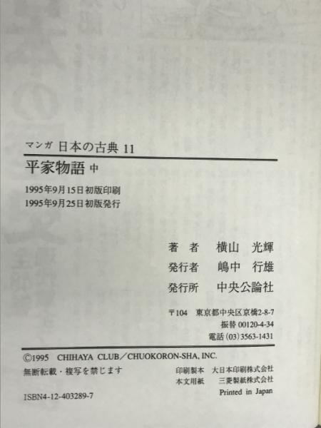 平家物語(中)―マンガ日本の古典 (11) 中央公論新社 横山 光輝