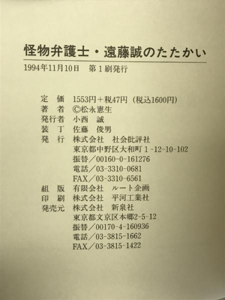 怪物弁護士遠藤誠のたたかい 新泉社 松永 憲生