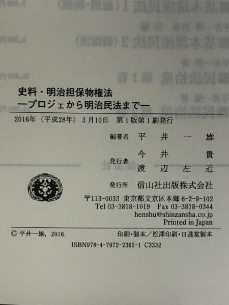 史料・明治担保物権法 信山社 平井 一雄