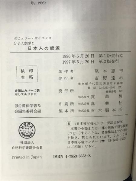 分子人類学と日本人の起源 (ポピュラー・サイエンス) 裳華房 尾本 恵市