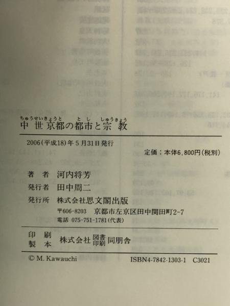 中世京都の都市と宗教 思文閣出版 河内 将芳