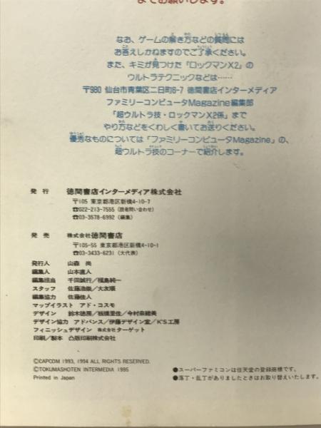 ロックマンX2 必勝攻略本 スーパーファミコン 徳間書店インターメディア