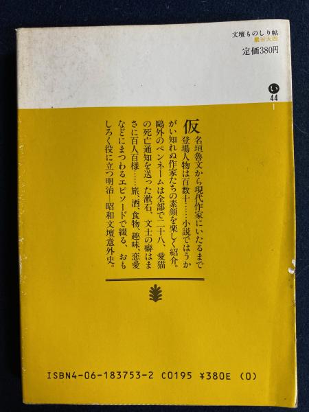 • 解説 初版 カバー 栞 あとがき ※日販のPR誌「新刊展望」連載の「文壇史余滴」から選択のほか他誌のものも収録して、1982年河出書房新社刊 ※経年劣化によるしみや傷みあり送料185円