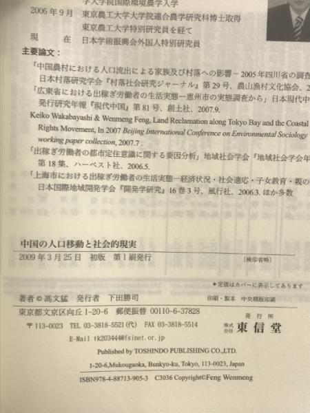 中国の人口移動と社会的現実 東信堂 馮 文猛
