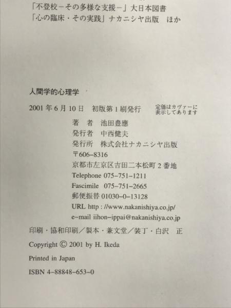 人間学的心理学 ナカニシヤ出版 池田 豊應