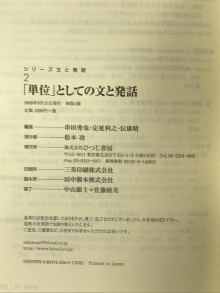 「単位」としての文と発話(シリーズ 文と発話 第2巻) ひつじ書房 串田秀也