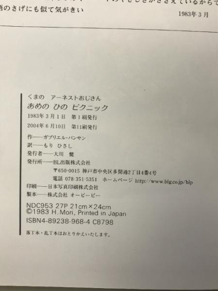 あめの ひの ピクニック くまのアーネストおじさん ビーエル出版 ガブリエル バンサン