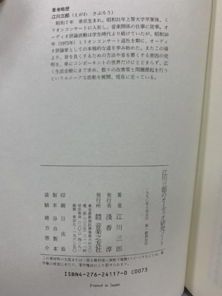 初版 江川三郎のオーディオ研究ノート 音楽之友社 江川 三郎