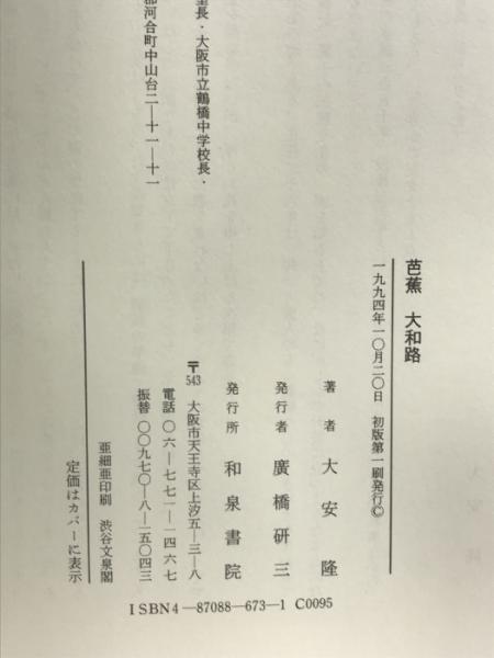芭蕉大和路 和泉書院 大安 隆