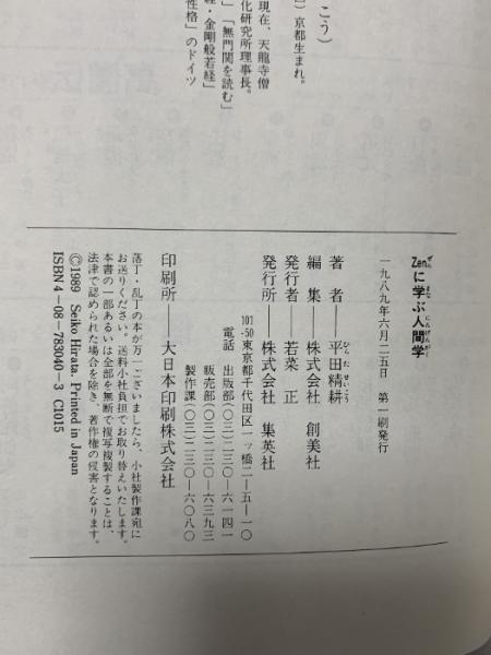 Zenに学ぶ人間学 集英社 平田 精耕