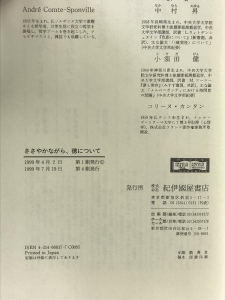 ささやかながら、徳について 紀伊國屋書店 アンドレ コント‐スポンヴィル