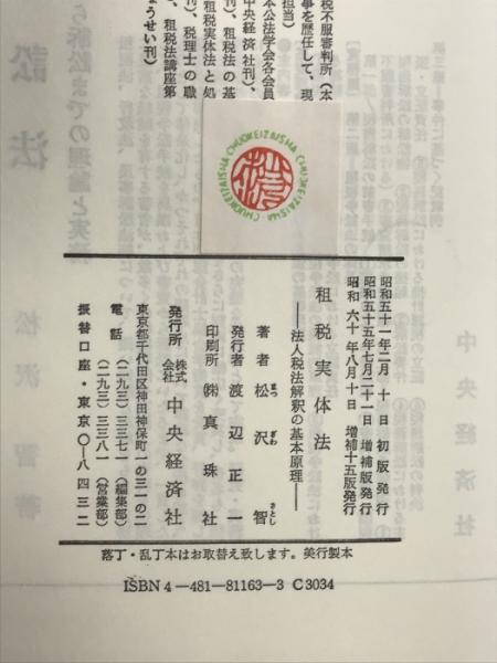 租税実体法―法人税法解釈の基本原理 中央経済社 松沢智