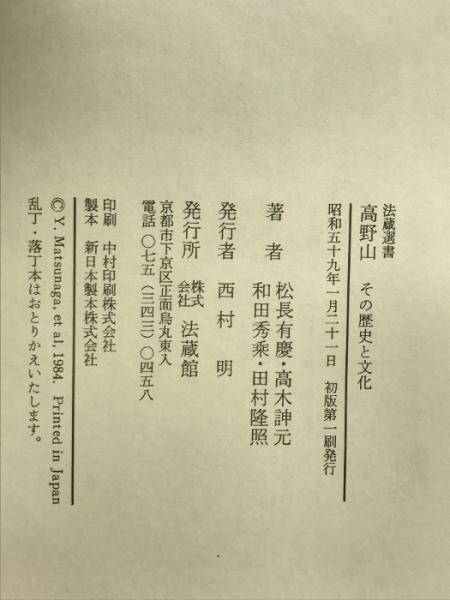 高野山: その歴史と文化 (法蔵選書 27) 法蔵館 松長 有慶