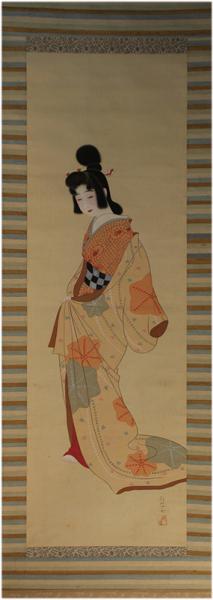 掛軸 美人乃図 紅坡画