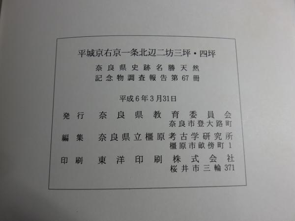 平城京右京一条北辺二坊三坪・四坪 奈良県史跡名勝天然記念物調査報告第67冊