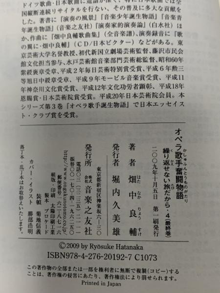 オペラ歌手奮闘物語 繰り返せない旅だから 四 最終巻 音楽之友社 畑中 良輔