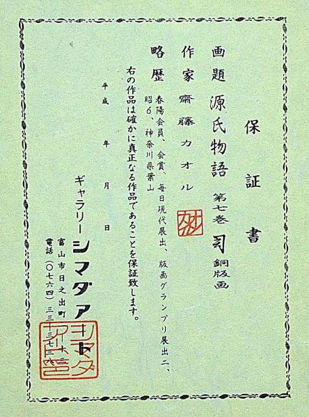 斎藤カオル銅版画 「源氏物語・第七巻・幻」限定85部 サイン入